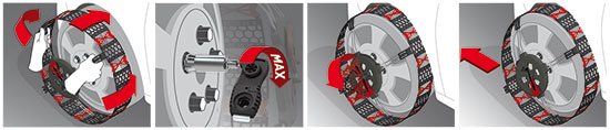 Det unikke universal bolt-system betyder, at kæden passer til alle typer hjulbolte uden behov for ekstra monteringstilbehør. Den integrerede bespænding gør monteringen hurtig og sikker, så du kan komme hurtigt videre i sne og is.