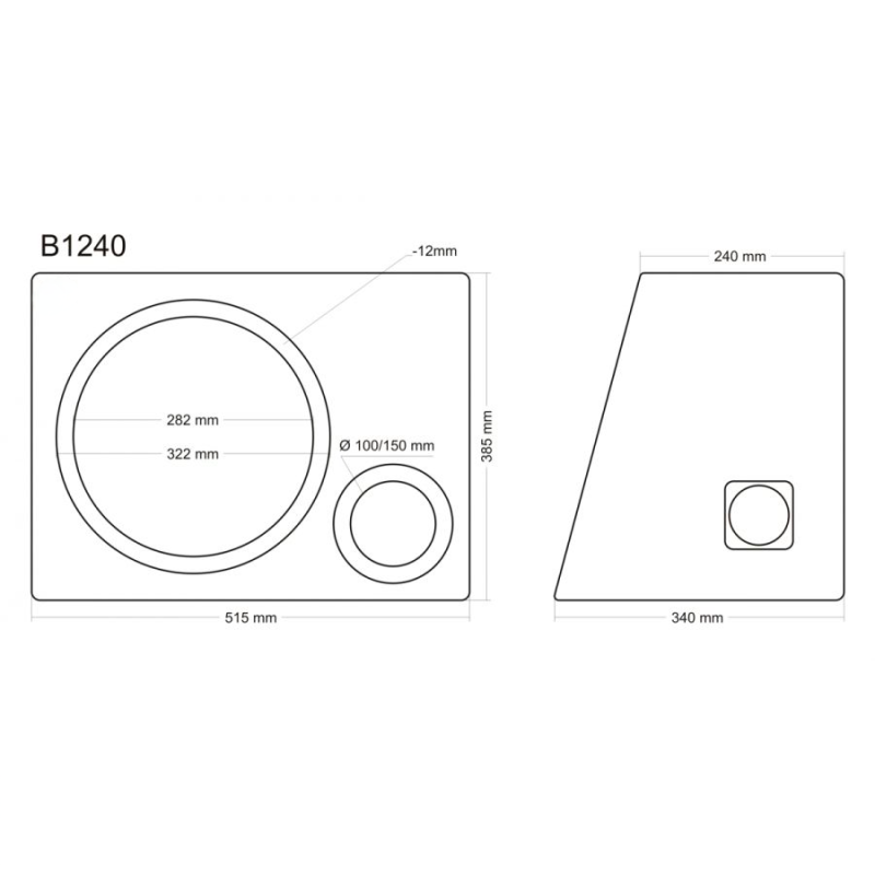 Denne skrå model passer til 12" (30 cm) subwoofere og har et volumen på 40 liter, hvilket gør den ideel til kompakte installationer i biler. Den skrå bagvæg gør montering nem i bagagerummet, samtidig med at porten er optimeret for bedst mulig luftgennemstrømning og lydrespons.