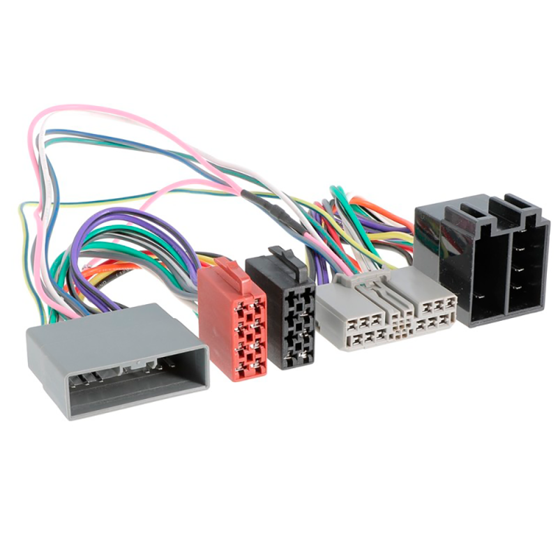 Kabelsættet består af en køretøjsspecifik stik-stik-kombination og tilsluttes mellem standard bilradioen og det originale ledningsnet (T-kabel). Ind imellem er der et 8-benet ISO strøm/højttalerstik og et 8-benet ISO strøm/højttalerstik. Dette bruges så til at etablere forbindelsen til de ekstra enheder.