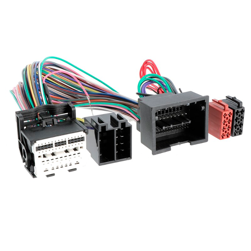 Kabelsættet består af en køretøjsspecifik stik-stik-kombination og tilsluttes mellem standard bilradioen og det originale ledningsnet (T-kabel). Ind imellem er der et 8-benet ISO strøm/højttalerstik og et 8-benet ISO strøm/højttalerstik. Dette bruges så til at etablere forbindelsen til de ekstra enheder.